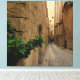 Mittelalterliche schmale Straße große Gebäude und Leinwanddruck
