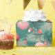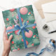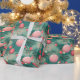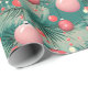 Alles in allem vereint dieses Verpackungspapier wunderbar das Wesen des modernen Designs der Mitte des Jahrhunderts und verleiht ihm die Wärme und Freude der Ferienzeit. Seine Kombination aus rosa Weihnachtsschmuck, grünem Hintergrund und Kiefernästen schafft eine reizvolle visuelle Tapisserie, die sich perfekt zum Verpacken von Geschenken mit einer Touch von Retro-Flair und festlichem Beifall eignet.