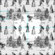 Pestdoktor, mittelalterlich, gotisch, historisch, Fantasy, Toile, Toile de Jouy, vintage, antik, Halloween, Skelett, Pest, makaber, unheimlich, finster, Illustration, schwarz-weiß, Architektur