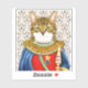 Aufkleber in einem Portrait einer Tigergestreiften Katze, gekleidet als mittelalterlicher Prinz, in königlichen Gewänder und einem verzierten Kragen, mit einem Zepter