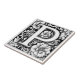 Mittelalterliche Illuminierte Letter P Keramik Tile Eine Schwarz-Weiß-Vektor-Abbildung des Briefes in einem aufwändigen mittelalterlichen Stil, erstellt im Stil von Albrecht Dürer. Das Design ist ein Quadrat mit einem großen, zentralen Blumenmotiv, das umrahmt ist
