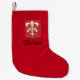 Herrlicher, rot-weißer Weihnachtsweih-Strumpf. Dekoriert einen Flour de lys Stil Schild Grafik und mittelalterlichen Stil Schriftart. Geben Sie Ihren/Empfängernamen ein.