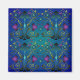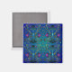 Lieblicher mittelalterlicher Blumenmuster quadratischer Magnet, lila, grün, blau auf Mitternachtsblau.