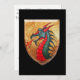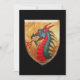 Linda Baysinger die Malerei Pecks eines grünen und roten europäerartigen Drachen, auf einem Goldschild. Große Einladungen für Ihr Renaissancethema-Party! Fügen Sie einfach Ihren eigenen Text auf der Rückseite hinzu!