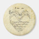 Auf einem Pergament-Hintergrund, ein ungewöhnliches, herzförmiges mittelalterliches Musikmanuskript, Cordiers Ode an einen, der "Bonne, belle, et sage" ist, französisch für "gut, schön und weise".