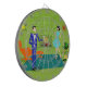Dieses Modern Couple Dart Board aus dem Mittelalter sieht aus wie eine Szene aus einer romantischen Komödie. Das minimalistische Design der 60er Jahre besticht durch ein ansprechendes Cartoon-Paar, das einen romantischen Abend bei Zuhause genießt. Das elegante Zimmer besticht durch eine grüne Steinmauer und einen Kamin. Die Einrichtung der Zimmer umfasst einen orangefarbenen, mit einem Stuhl passenden Sitzbereich, eine rote Wanduhr, eine gelbe Sternexplosion, eine Lampe mit Sputnik und einen orangefarbenen Beistelltisch, der zu einem tragbaren, grünen Schallplattenspieler Zuhause. Auf dem Fußboden neben dem Endtisch sieht man eine Schallplatte aus einem kitschigen Albumcover. In der Mitte des grünen Fußbodens befindet sich ein großer, rechteckiger, aquamariner Teppich. Mitten in der Szene haben wir ein sehr raffiniertes Paar. Es gibt einen suave Mann in einem königsblauen Anzug, weißes Shirt und blaue Bogen Krawatte. Der große, dunkle und gut aussehende Mann blickt auf seinen hübschen Begleiter. Die elegante, ravenhaarige Frau trägt ein üppiges Aqua-Kleid. Sie besitzen jeweils ein Kristallmartini-Glas mit schwimmendem Olivenöl. Prost! Hier zum perfekten Abend bei Zuhause!