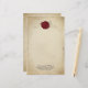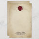 Dieses maßgeschneiderte, stationäre Papier zeichnet sich durch ein historisches mittelalterliches Thema aus. Der Hintergrund ist ein verblasstes Pergamentpapier-Design, das einer mittelalterlichen Schriftrolle ähnelt. Ein verzierter Goldrahmen grenzt an das Papier. Oben wird ein Siegel mit rotem Wachs platziert, wobei eine Probe anfänglich verwendet wird. Ein Beispielname und eine Adresse werden in der unteren Ecke gedruckt. Sie können den stationären Text personalisieren, um Ihren eigenen Anfangstext und Ihren eigenen Text einzubinden.