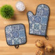 Mittelmeer-Fliesen, Portugal, Azulejo, Majolica Ofenhandschuh & Topflappen-Set