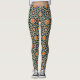 Ein Design in Orange, Weiß und Rot auf schwarzem Hintergrund, das an eine mediterrane Blumenfliese erinnert und diese Leggings wunderschön und einzigartig macht