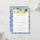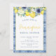 Aquarellblau gelbe Blumenlachse mit mediterraner Kachel Brautdusche Einladung.
