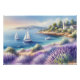 Dieses pulsierende Kunstwerk vereint eine traumhafte Szene an der Mittelmeerküste, wo sich üppige Lavendelfelder sanft abfallen und kristallblaues Wasser mit eleganten Segelbooten treffen. Das Gemälde verbindet den Charme eines an der französischen Riviera gelegenen Dorfes - mit seinen Steinmauern und einem malerischen Kirchturm - mit der gemütlichen Stille einer Sommersaison. Gulls gleiten über den ruhigen Ozean, und das goldene Licht der Dämmerung strahlt ein warmes Licht über die Kiefernfelsen. Der sanfte Aquarellstil verleiht der Komposition eine ätherische Qualität, die das friedliche und romantische Ambiente verstärkt. Ideal, um Gefühle der Flucht, der Ruhe und der zeitlosen Schönheit der Provence zu wecken. AI generierte Kunstwerke.