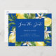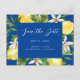Mediterranes Blau mit Zitronen Hochzeit Save the Date. Website. Tropisch. Postkarte.