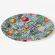 Mittelmeersommerfrucht und blaues weißes Mosaik Pappteller