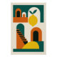 Eine helle, frische und architektonische Zusammensetzung, die Zitrone zur Ehre gereicht. Auf diesem Poster sind die Geruchssinn des Südens, die Okres und der ewige Sommer der Amalfittinsküste zu sehen.