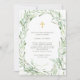 Dieses elegante, stilvolle Christliche Confirmation lädt mit einem mediterranen Olivenzweig in Aquarell auf einem zarten, weißen Hintergrund mit einem Imitat-Goldkreuz ein.