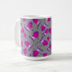 Diese festliche Tasse zeigt rosa Aquarellmilben auf einem Hintergrund von Punkten auf Grau.