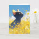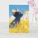 Diese bezaubernde Grußkarte verfügt über eine merkwürdige schwarze Katze, die auf einem lebendigen Feld aus gelben und blauen Blumen gegen einen klaren blauen Himmel aufblickt. Die skurrile Illustration verbindet die spielerische Unschuld eines Kätzchens mit der Schönheit der Natur und erweckt den Geist einer sonnigen, mit Blume gefüllten Wiese. Ideal für Katzenliebhaber, Naturliebhaber und alle, die Kunst mit einer Touch Magie schätzen, ist diese Karte die ideale Wahl für Geburtstage, Dankeschön-Noten oder einfach nur ein Lächeln zum Tag. Die lebhaften Farben und die herzliche Szene schaffen eine fröhliche und aufregende Grußkarte für jeden Anlass.