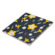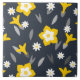 Retro-Blume und Blätter in Weiß, Grau und Ockergelb über einem dunkelblauen Hintergrund. Die Hintergrundfarbe kann geändert werden.
