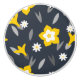 Retro-Blume und Blätter in Weiß, Grau und Ockergelb über einem dunkelblauen Hintergrund. Die Hintergrundfarbe kann geändert werden.