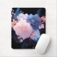 Ein faszinierendes, blumengeschmücktes Set vor schwarzem Hintergrund, wo weiche Pfirsich, Blüten und zwielblaue Blütenblätter mit ätherischer Schönheit leuchten. Feine Blüten und aufwändige Blätter verbinden sich mit subtiler Lumineszenz und schaffen einen auffallenden Kontrast von Licht und Schatten.