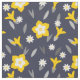 Retro-Blume und Blätter in Weiß, Grau und Ockergelb über einem dunkelblauen Hintergrund. Die Hintergrundfarbe kann geändert werden.