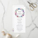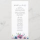 Elegantes blumengeschmücktes Hochzeitsprogramm mit Ihren Namen, umrahmt von einem Kranz lila, lila & blauer Aquarellfarben-Blume mit grünen Blätter. Persönlich gestalten Sie die blumengeschmückten Hochzeitsfeiern, indem Sie Ihre Hochzeitsfeier, Ihre Hochzeitsfeier und Ihre Hochzeitsfeier auf der Rückseite hinzufügen. Entworfen, um mit unserer Hochzeitskollektion Midnight Blooms zu koordinieren.