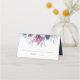 Elegante blumengeschmückte Hochzeitskarte mit einem Spray und Kranz aus lila, violetten und blauen Blume mit grünen Blätter, die mit unserer Hochzeitskollektion von Midnight Blooms abgestimmt sind. Fügen Sie Ihre Initialen und das Hochzeitsdatum auf die Rückseite der Platzkarten für einen personalisierten Look.