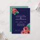 Chic Mitternacht blühende Hochzeitseinladungen für eine Winterhochzeit im Abend. Die Aquarellpappe mit grünen Blätter ergänzen den dunkelblauen Hintergrund dieser hochklassigen Zeremonie perfekt. Der aquamarine Schatten des botanischen Blattes aus der Mohn-Blume ist eine einmalige Wahl für diese elegante nächtliche Angelegenheit einlädt.