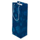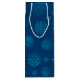 Urlaubwein / Flaschengeschenktasche mit blauen Schneeflocken oder Eiskristallen auf dunkelblauem Hintergrund.