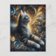 Ein lebendiges Gemälde, das die Essenz einer Katze vor einem auffallenden schwarzen Hintergrund einfängt und ihr anmutiges Verhalten und ihren intensiven Blick zeigt.