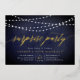 Unsere festliche Überraschung-Party Einladung in schick Mitternachtsblau und Weiß weist einen reich strukturierten Mitternachtsblauen Hintergrund auf, der von weißen Lichtern überragt wird, und "Überraschungs-Party" in schicken Goldfolien-Kalligraphie-Schrift Typografie. Persönlich gestalten Sie Ihre Überraschungsfeierlichkeiten in Weiß. Sie können für jeden Anlass, wie Geburtstagsfeiern oder Jubiläumsfeiern, genutzt werden. Ein elegantes Design in dunkler Marine und Weiß für elegante Events.