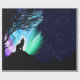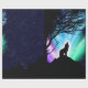 Das Aurora Borealis. Ein Wolf heult in der Stille der Nacht. Die Szene ist sowohl dramatisch als auch schön und macht es zu einem magischen Kunstwerk.
