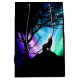 Das Aurora Borealis. Ein Wolf heult in der Stille der Nacht. Die Szene ist sowohl dramatisch als auch schön und macht es zu einem magischen Kunstwerk.