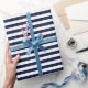 Mitternacht Navy Blue und White Stripes Geschenkpapier