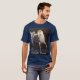 Marine-Blau T mit dem weißen arabischen Stallion, der in das Wasser tänzelt