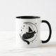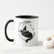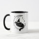 Eine schwarze Katze, die auf einem halbmondförmigen Mond schläft, mit einem sanft über einem Ohr ruhenden Hexenhut. Minimale Linien, Träume und sanfte Atmosphäre.