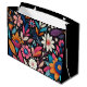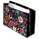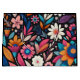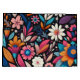 Ein Kaleidoskop von Blüten in lebhaften Schmucktönen - Korallen, Kobalt, Kanaren und Pflaumen - strahlt in einer spiegelnden Blumenstruktur über einen dramatischen schwarzen Hintergrund aus. Dieser romantische und kühne Garten verleiht jedem Dekor und Geschenk-Design Eleganz.