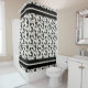 Mitternachtswacher - Owls & Feathers in Flight Shower Vorhang Ein rhythmisches Muster von mit Augen Eulen und treibende Federn entfaltet sich über eine monochrome Leinwand, die den stillen Zauber der Dämmerwälder weckt. Jede Eule wird mit lebendigen Details, ihrem Blick stetig und wachsam, während schwarze und graue Federn in verschiedenen Orientierungen schweben und Bewegung und Textur hinzufügen. Die gitterartige Wiederholung schafft ein Gefühl von Ausgewogenheit und Wachsamkeit - perfekt für Themen wie Weisheit, Geheimnis und ruhige Wächter der Natur.