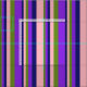 Dieses Design zeichnet sich durch ein dunkelblau, hellrosa, grün und lila Streifen Muster aus.