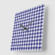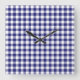 Mitternachtsblau und weiß gekreuztes Gingham-Muste Quadratische Wanduhr