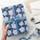 Ein elegantes Blumenmuster in sanften Blautönen, das Ruhe und Stil ausstrahlt. Zarte Blüten entfalten sich auf tiefem Mitternachtsblau – ein harmonisches Design, das Natürlichkeit und Eleganz verbindet.