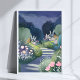Mitternachtsgarten | Wasserfarben-Blumenpfad Poster Kunst Druck