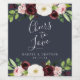 Personalisierte Weinetiketten sind ideal, um Ihren Tafelwein, Ihre Gastgeschenke Hochzeiten oder Willkommensgeschenke mit einer einzigartigen Touch zu versehen. Das elegante Blumendesign besticht durch "Beifall zur Liebe" mit Ihren Namen und dem hellen Hochzeitstermin, flankiert von Haufen von Rosa, Elfenbein und Bordeaux-Marsala, Aquarellfarben und grünem Blattwerk auf einem reichen marinen Hintergrund. Entworfen, um mit unserer Hochzeitssuite Blush Romance und Midnight Romance zu koordinieren.