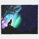 Die Aurora Borealis. Ein Wolf heult in der Stille der Nacht. Die Szene ist sowohl dramatisch als auch schön und macht sie zu einem magischen Kunstwerk.