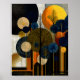 Golden Grove: Abstrakter Wald in strahlender Geometrie. Ein stilisierter Wald entfaltet sich in kreisförmigen Baumkronen in Gold, Schwarz und Tiefblau, wobei jeder Baum komplizierte Linien wie Rindenwellen oder Blätterbüschel ausstrahlt. Vertikale Stämme verankern die Szene, während ein gepunkteter, geometrischer Hintergrund moderne Textur und Tiefe hinzufügt. Diese abstrakte Komposition verbindet organische Formen mit mutigem Design und evoziert die Natur durch eine Linse der Symmetrie und Eleganz. Entworfen in einem vielseitigen 4:5-Verhältnis, bringt dieser hochauflösende digitale Download leuchtende Kunstfertigkeit und handgefertigten Charme in jeden Raum, perfekt zum Rahhmen, Verschenken oder zur Aufwertung Ihrer Heimdekoration mit lebhafter Garteneleganz.