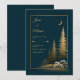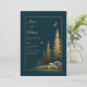 Versetzen Sie Ihre Gäste mit diesem atemberaubenden Design in einen ruhigen, sternenklaren Hain. Der tiefe, samtige Hintergrund in Mitternachtsblau bietet eine dramatische Leinwand für die schimmernden goldenen Kiefern und den zarten, schlanken Mond. Berührungspunkte mit elfenbeinfarbenen Wildblumen am unteren Ende fügen einen weichen, romantischen Kontrast zum knackigen, modernen Goldrahmen hinzu und erzeugen ein Gefühl von Tiefe und Geheimnis. Dieses Stück fängt die stille Majestät eines Winterwaldes ein und balanciert die rustikale Natur perfekt mit hochkarätiger Raffinesse aus. Dies ist eine Hochzeitseinladung, die für Waldzeremonien, Winter-Sonnenwende-Feiern oder elegante Abendveranstaltungen unter den Sternen konzipiert wurde.
