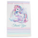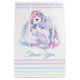 Mittlere Geschenktasche zu einer magischen Geburtstagsparty mit einem bezaubernden Einhorn mit Flügeln in den Wolken auf einem Regenbogenuntergrund.