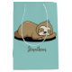 Sleeping Sloth Design Geschenktasche mit anpassbarer Hintergrundfarbe und Text.