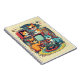 Notebook in einer skurrilen Illustration mit vier spielerischen Katzen, die Retro-Media-Geräte genießen. Eine Katze sitzt neben einem Vintagen Fernseher, während eine andere, die eine rote Brille trägt, auf Buchstapeln und Platten steht. Ein Turntable- und Kassettenspieler erinnert an eine Ästhetik aus der Mitte des Jahrhunderts.