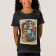 T - Shirt in einer skurrilen Illustration mit vier spielerischen Katzen, die Retro-Mediengeräte genießen. Eine Katze sitzt neben einem Vintagen Fernseher, während eine andere, die eine rote Brille trägt, auf Buchstapeln und Platten steht. Ein Turntable- und Kassettenspieler erinnert an eine Ästhetik aus der Mitte des Jahrhunderts.